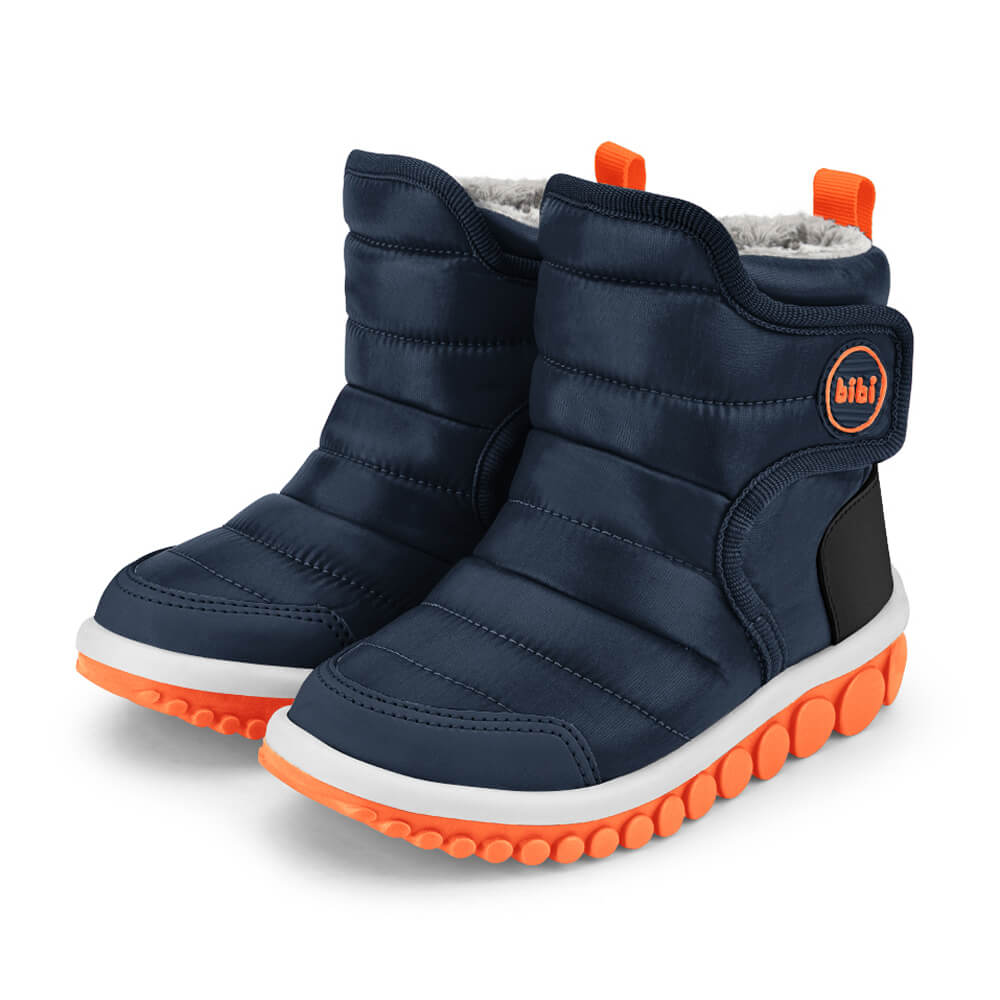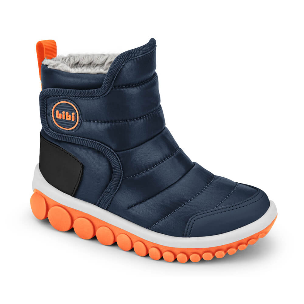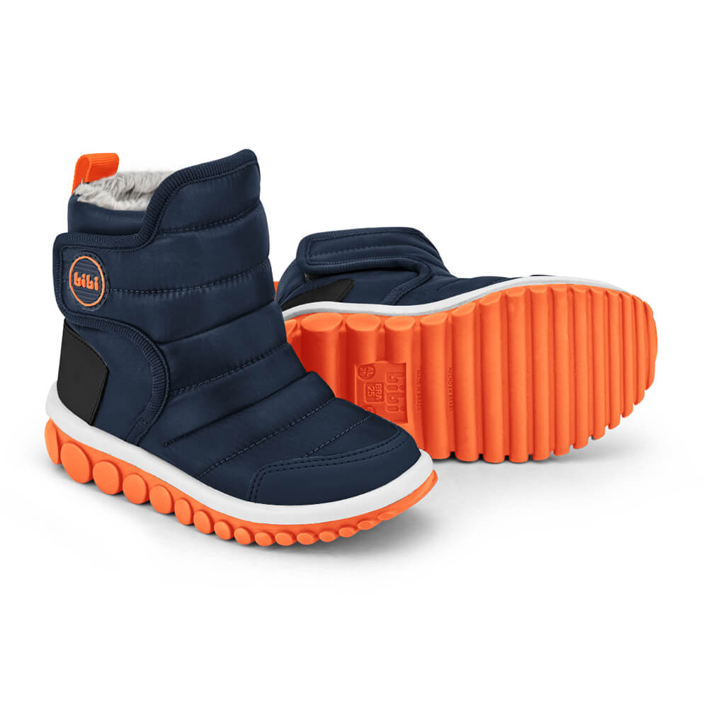 Boot style model in navy and fire (orange) colors, ideal for the biggest everyday adventures. It is made of nylon fabric with drop technology, which repels water to keep it out, but let sweat out. Very comfortable through the application of layers of foam in the nylon, resistance with the toe cap in synthetic material and fur lining to keep the feet super warm. The sole continues with bearings that follow the movement of the foot in a much more current and creative design. It has a "fisioflex" insole that is soft and like walking barefoot.