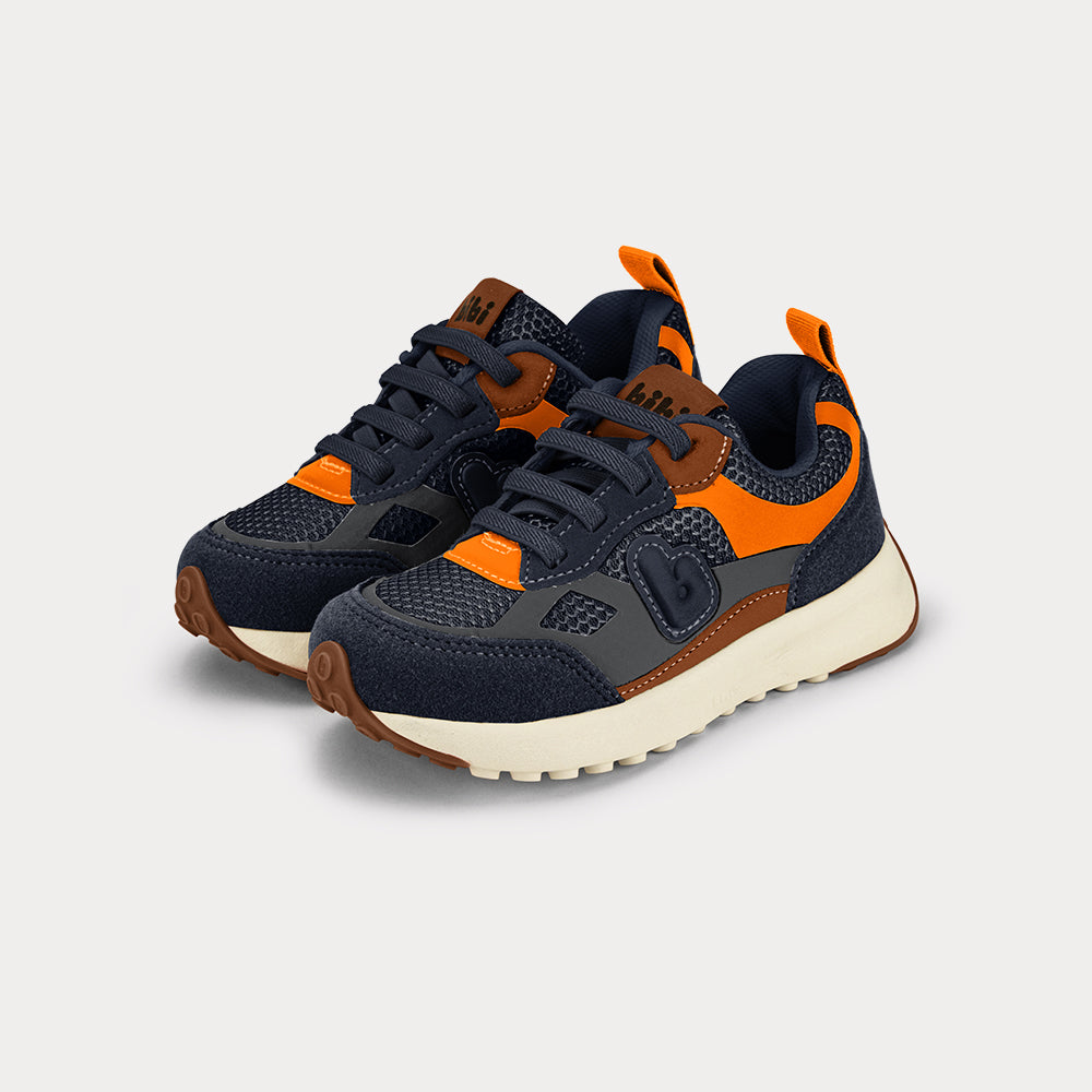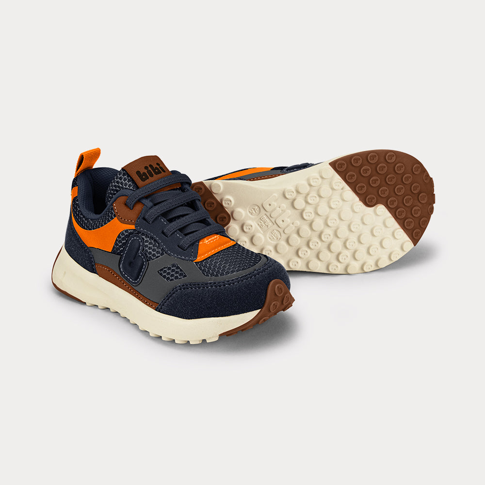 We present the children's sneaker from the Jogging Line, featuring the quality and expertise of Bibi, specialists in kids' footwear. This shoe is designed with an EVA sole and BPLUS technology, ensuring traction and safety with every step, along with a soft, rubberized touch that provides comfort. The model includes a functional elastic component, making it easy to put on and practical for the busy daily life of little ones.The Fisioflex insole allows children to feel as if they are walking barefoot, offering essential cushioning and activating important neurological functions. Made with materials free of toxic substances, this sneaker promotes health and well-being for kids. Additionally, its casual design in navy, electric blue, and caramel tones, combined with breathability, makes this sneaker the perfect choice for everyday adventures.