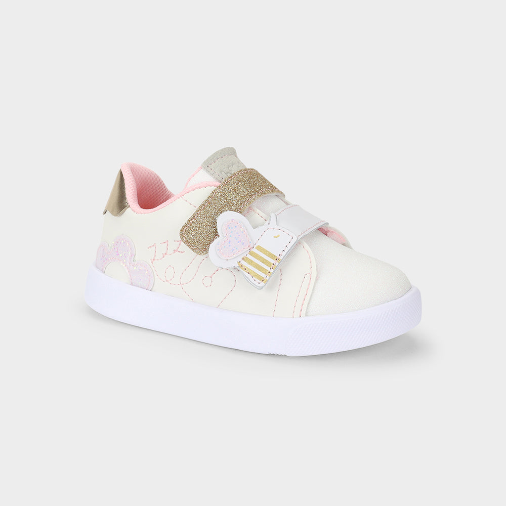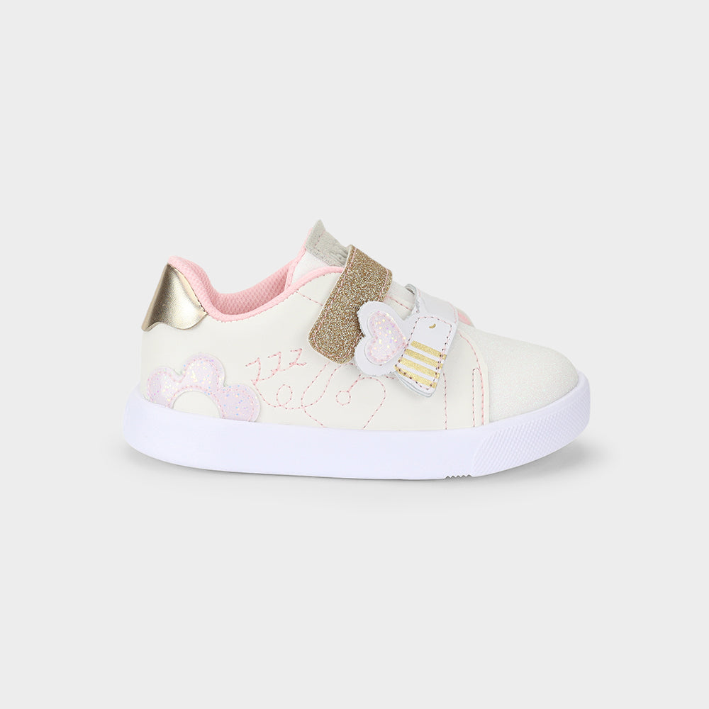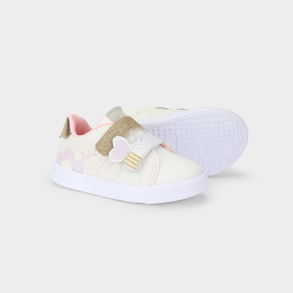 We present the Agility Mini II sneakers, perfect for little ones who are always on the move. With a casual design in white and gold glitter, a super delicate detail in the eyelet application, this footwear is the ideal choice for everyday wear. Developed with high-performance material, it ensures the necessary durability to keep up with all the energy of children. The Fisioflex insole provides the sensation of walking barefoot, ensuring comfort and cushioning, while stimulating neurological functions with each step. The velcro system makes putting on the shoes quick and practical, simplifying the routine for the little ones. With its composition free of toxic substances, the health of the feet is fully preserved. In addition, Bibi, a specialist in children's feet, ensures that the footwear allows natural perspiration, offering prolonged freshness and comfort. A smart and safe choice for little explorers!