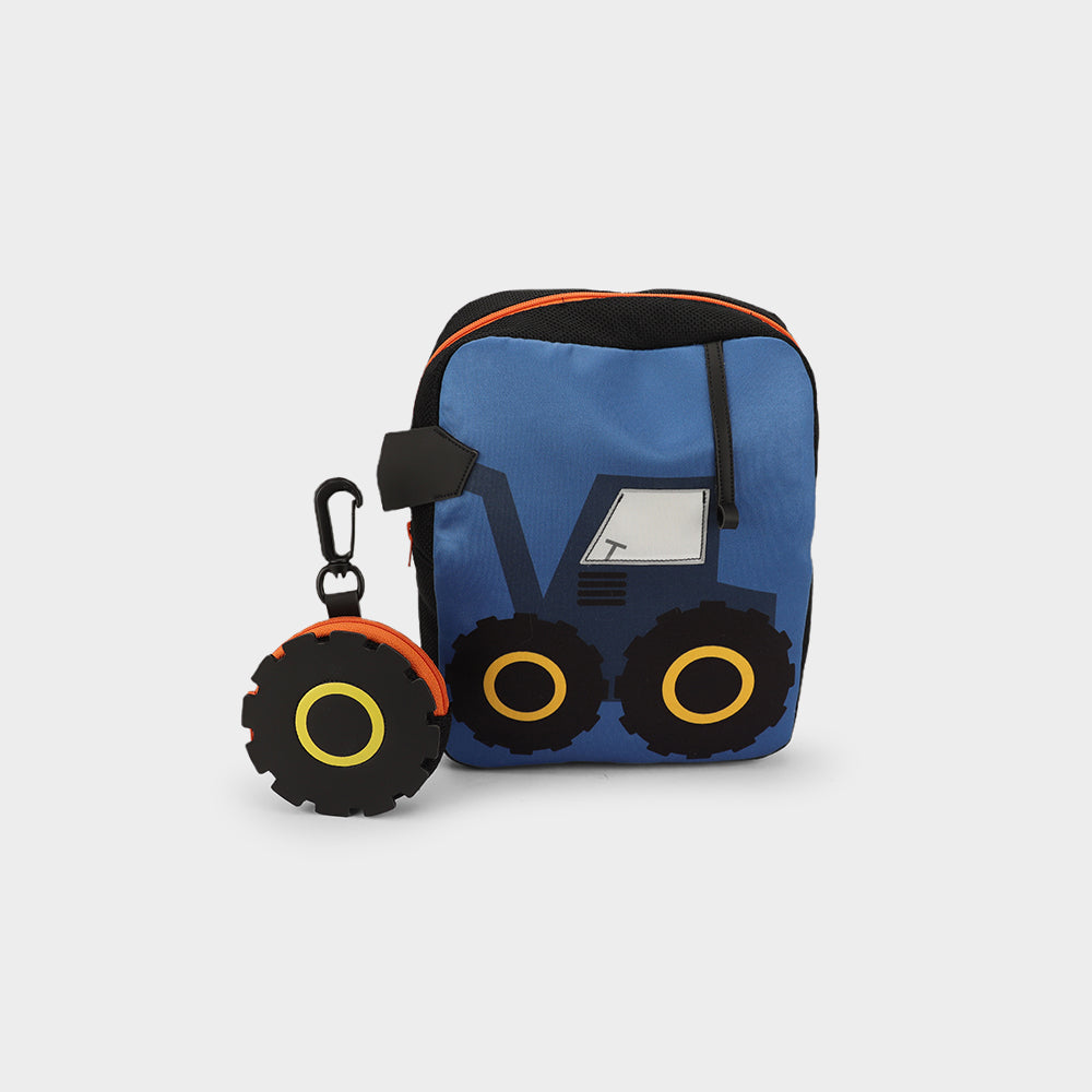Bibi's Blue Excavator Backpack is the perfect choice for little ones who love adventure! Its excavator print sparks imagination, and its fun design features vibrant colors and charming details, making this accessory a standout on any outing or school trip. It comes with a detachable pouch in the shape of an excavator wheel, practical for storing coins or small items with style. It also features spacious compartments and adjustable, padded straps for comfort and safety.