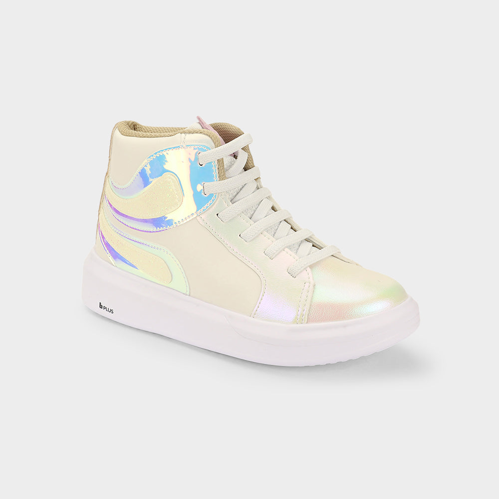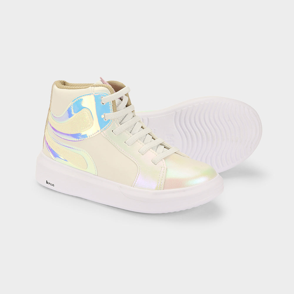 The Glam line sneaker from Bibi is the perfect choice for growing little feet. Featuring exclusive BPlus technology, its EVA sole provides excellent traction and safety, along with a soft, rubberized touch that ensures comfort during playtime. The high-performance material in an elegant white/holographic color offers a casual style, highlighted by a delicate butterfly detail on the heel, making it ideal for various occasions. Thanks to the elastic band and easy slip-on design, kids can put them on quickly and effortlessly. The Fisioflex insole simulates the feeling of being barefoot, promoting cushioning and activating neurological functions with every step. Most importantly, the shoe is free from toxic substances, ensuring the health of little ones. As a specialist in children's feet, Bibi develops breathable footwear that cares for their well-being.